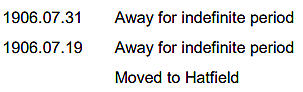 returning in the September of that year, before moving to Hatfield, Herts. some time later.