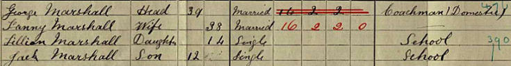 Lilian and Jack were the children of coachman, George (not James) and Fanny Marshall. Lilian had