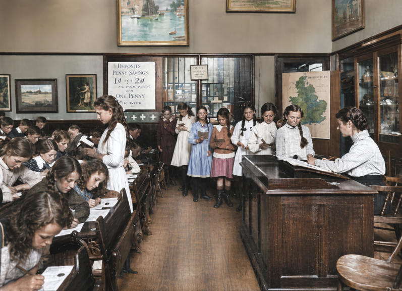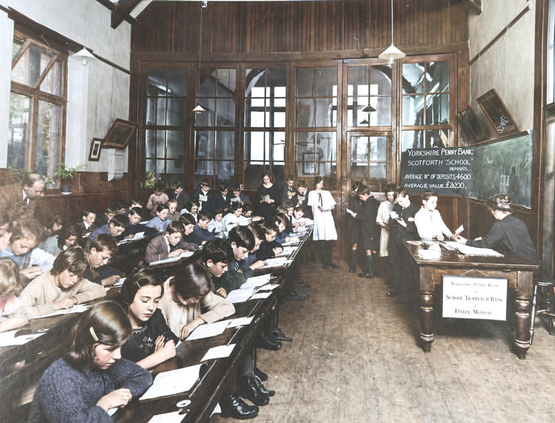 bank was in the school. (Below) Penny Bank day at a Wakefield school in 1905.