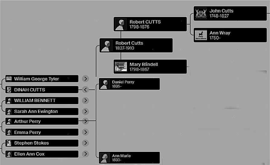 Shown above is Sarah Tyler’s abbreviated tree. It shows her ancestors, Daniel and Ann Marie Perry